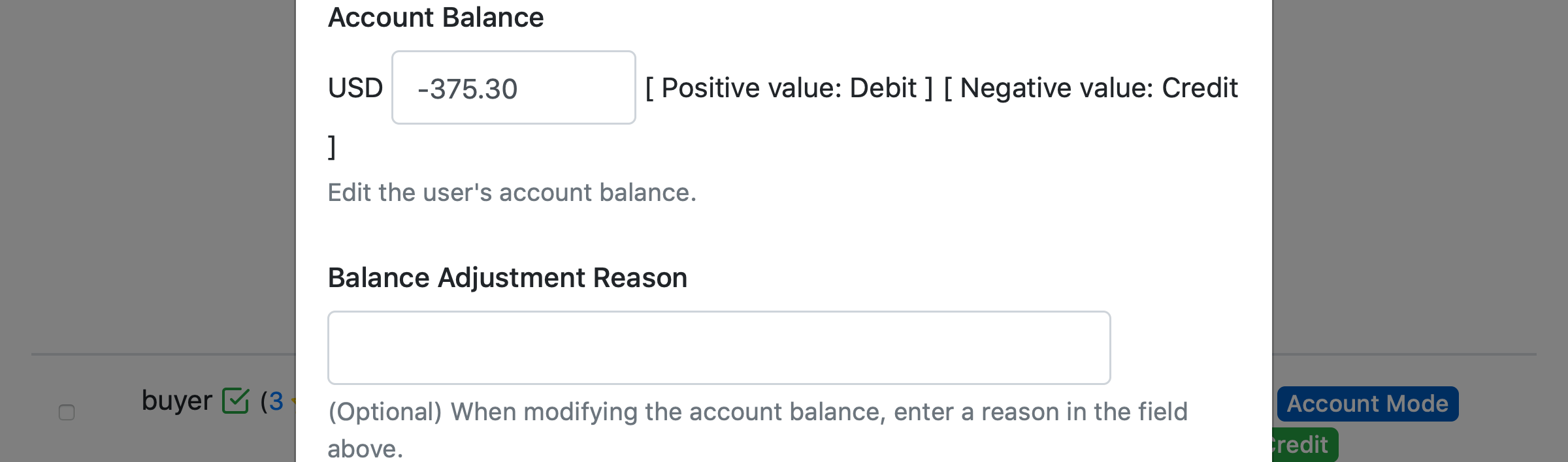 Note: Debit (always a positive value) and Credit (always a negative value) invoices will be deducted from the Account Balance.