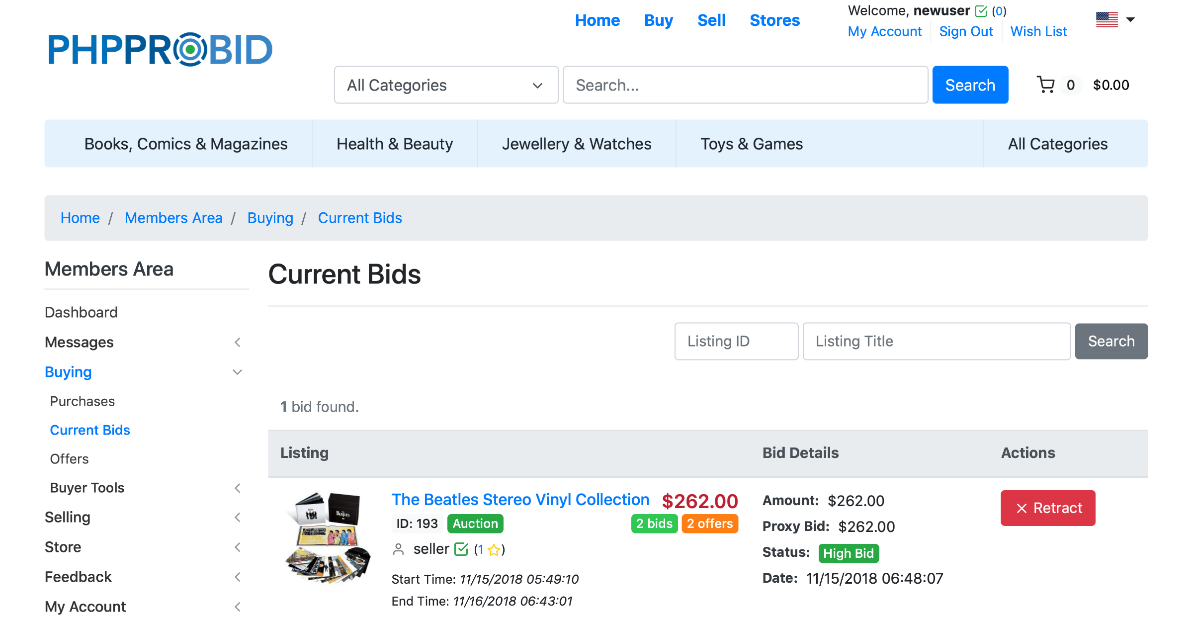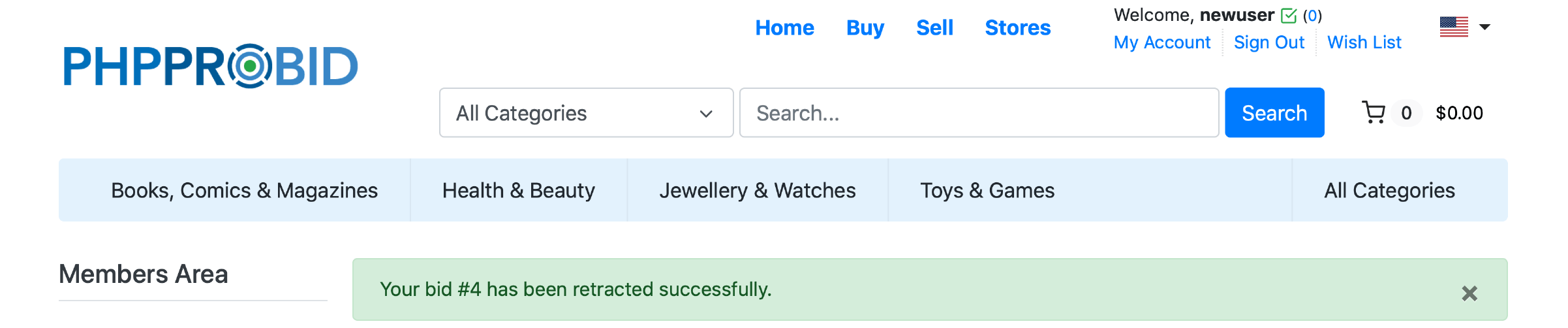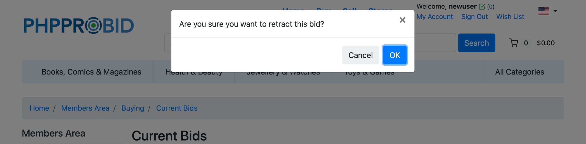 Important: Only the highest bidder will be allowed to retract his / her bid.