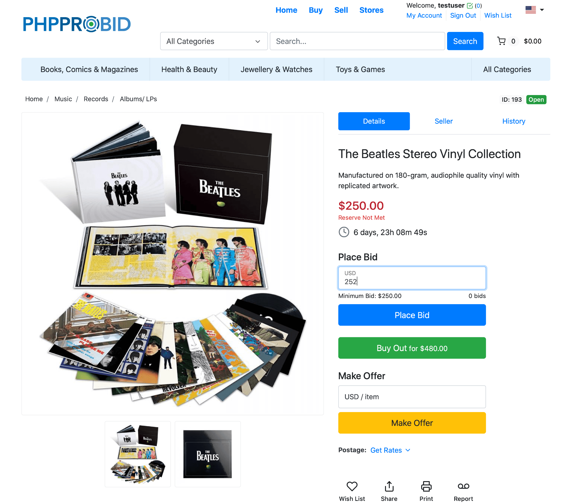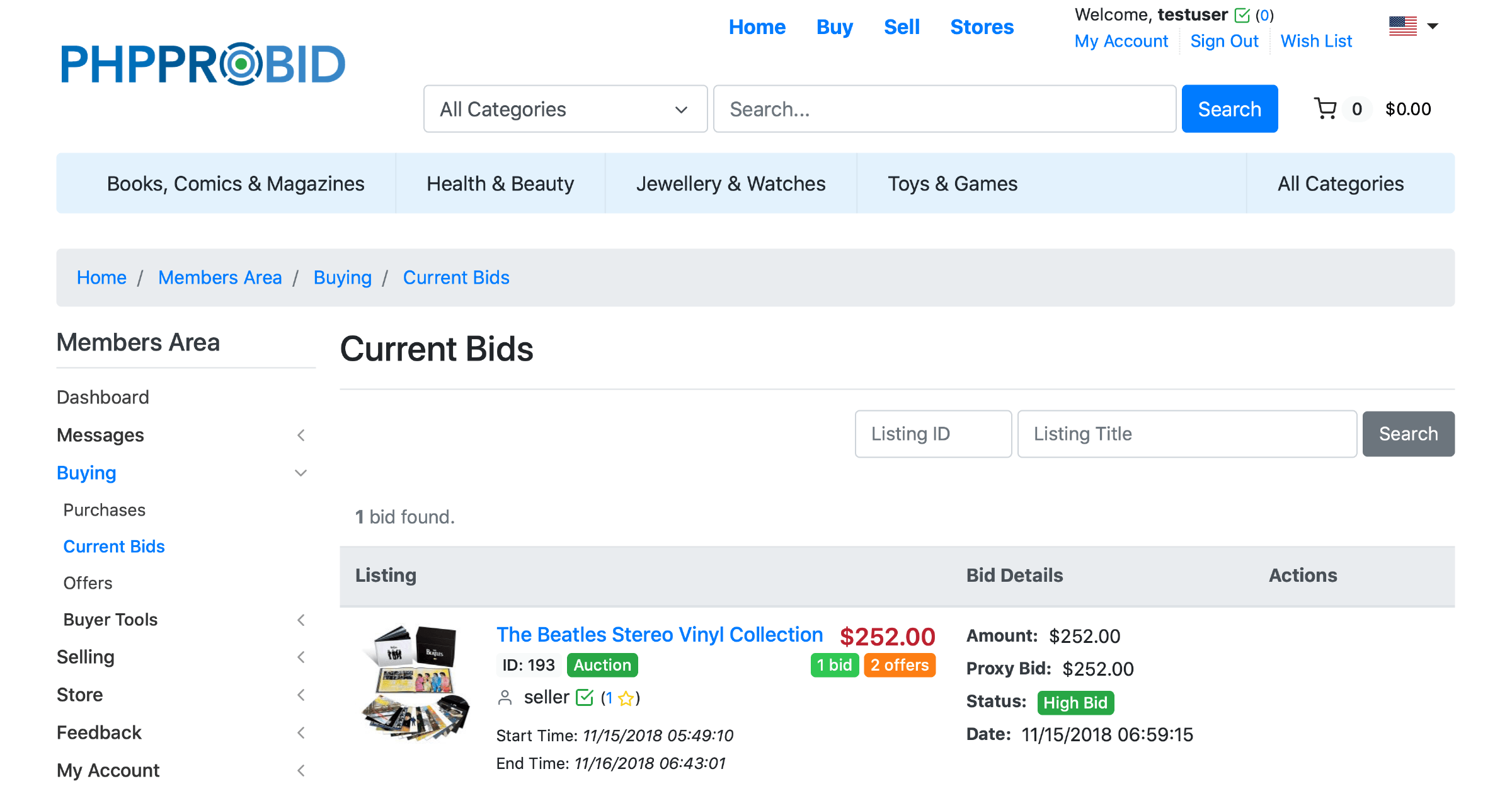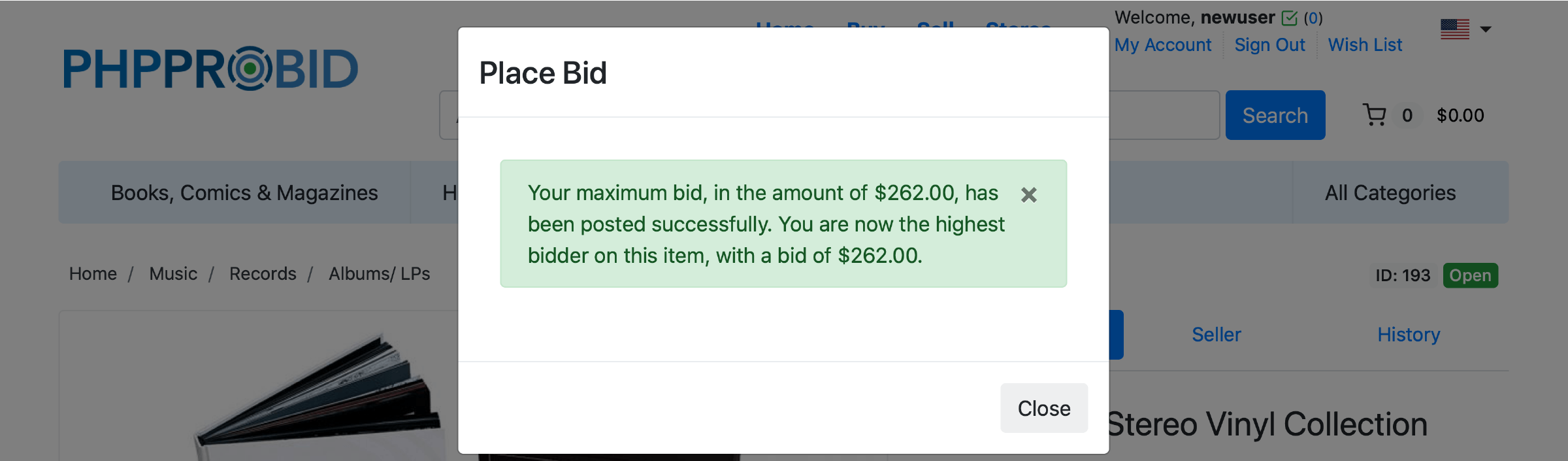 Buyer2 outbid Buyer1 with a $262,00 bid.