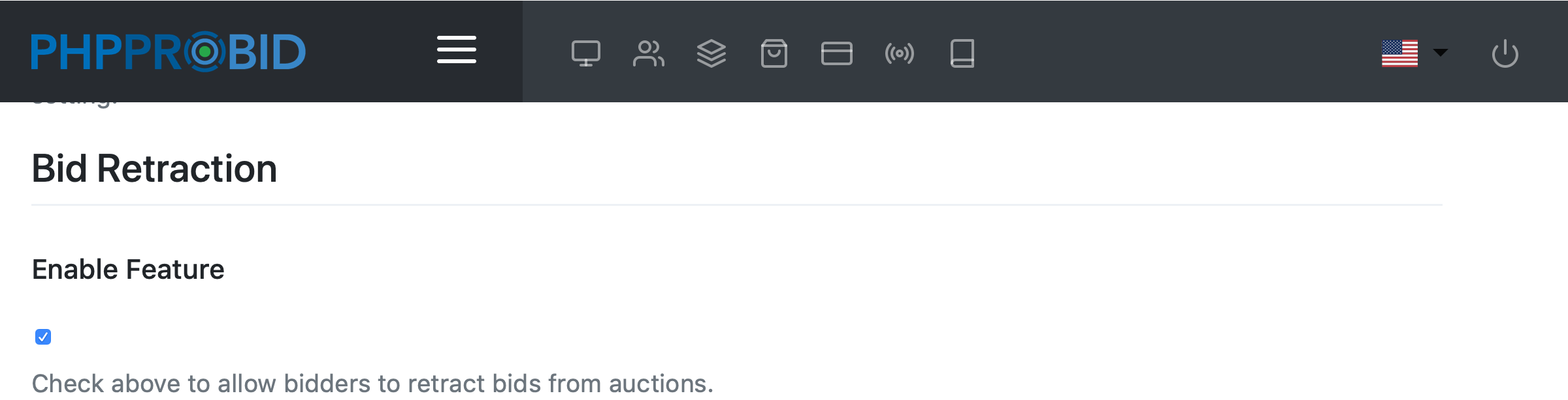 From the Bid Retraction (Admin Control Panel -> Settings -> Listing Settings -> Auctions & Products -> Auction Settings) section: