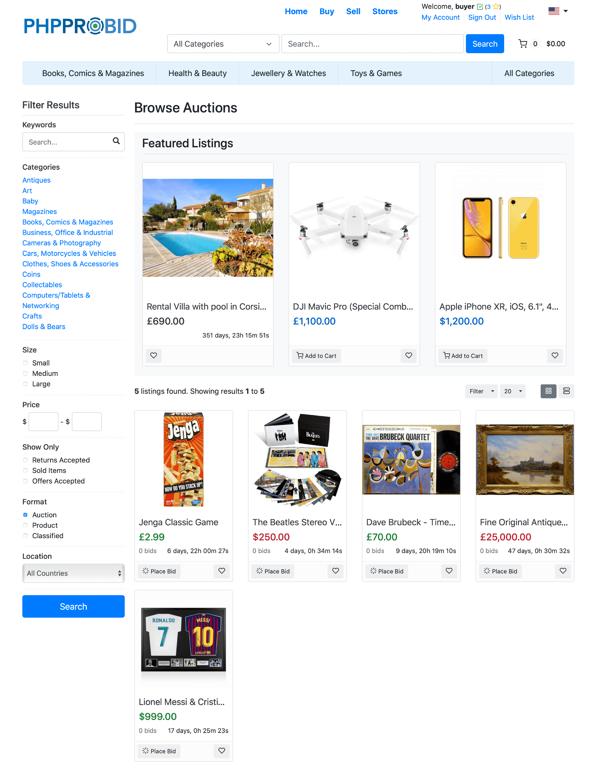 Next, click on Auction on the left side of the screen and you'll see all the products available for auction: