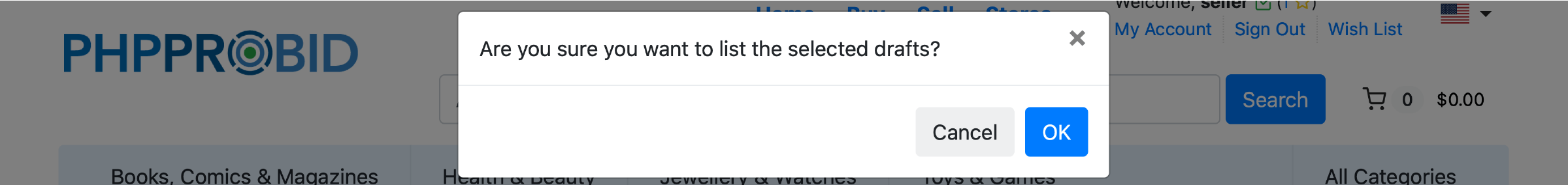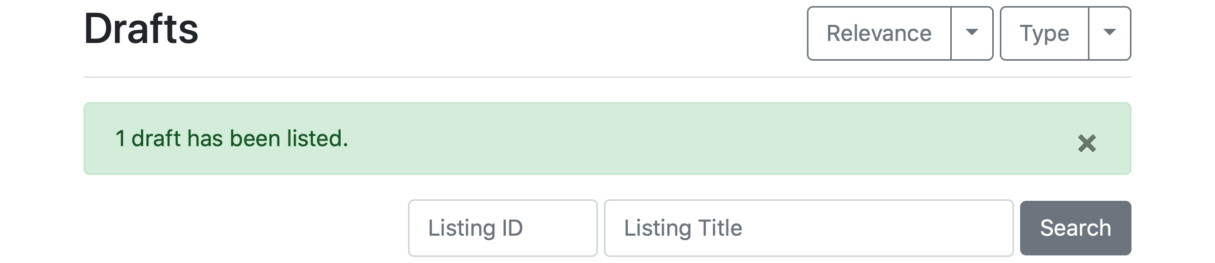 From the Drafts section, select the product(s), click List Items and confirm listing:
