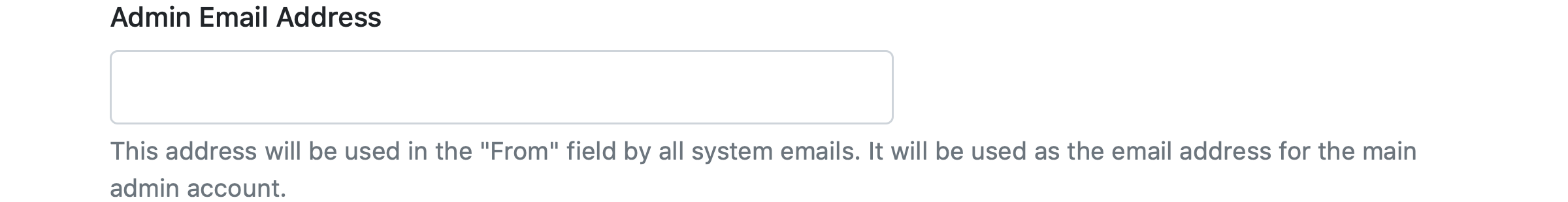The address will be used in the "From" field by all system emails and will be the email address for the main admin account.