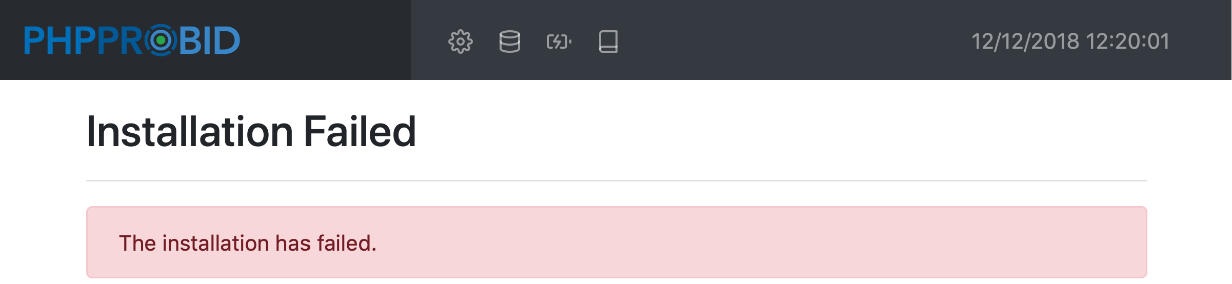 If there were errors during the installation process (e.g: global configuration file is not writable, data connection invalid, etc.), then the installation is failed. Consequently, the user must start a new installation process.