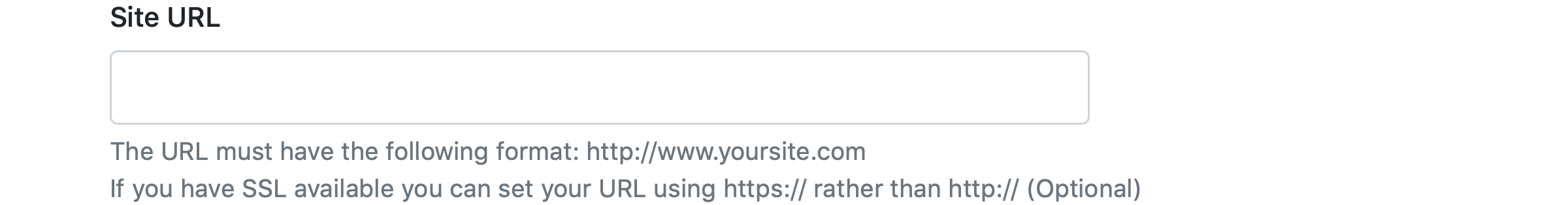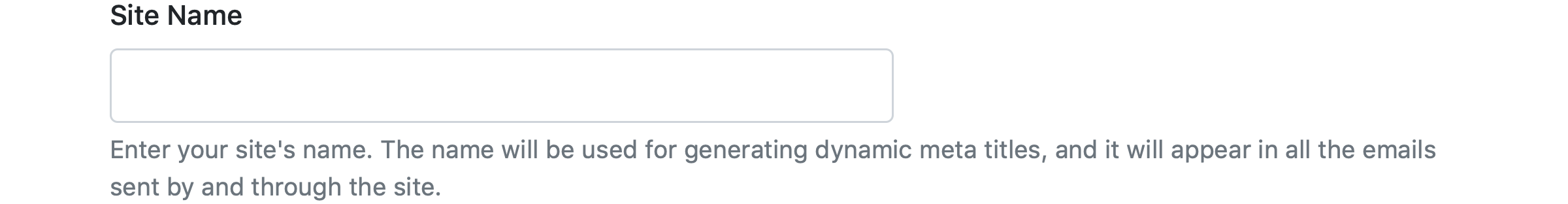 Enter site name. The name will be used for generating dynamic meta titles and will appear in all emails sent by and through the site.