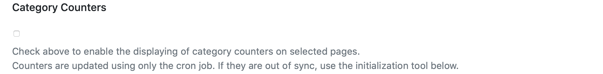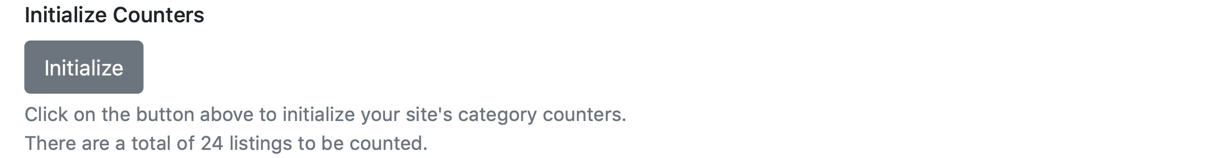 If clicked, will start the process of initializing the site's category counters. Please wait until the completion confirmation message is displayed before navigating away from the page.