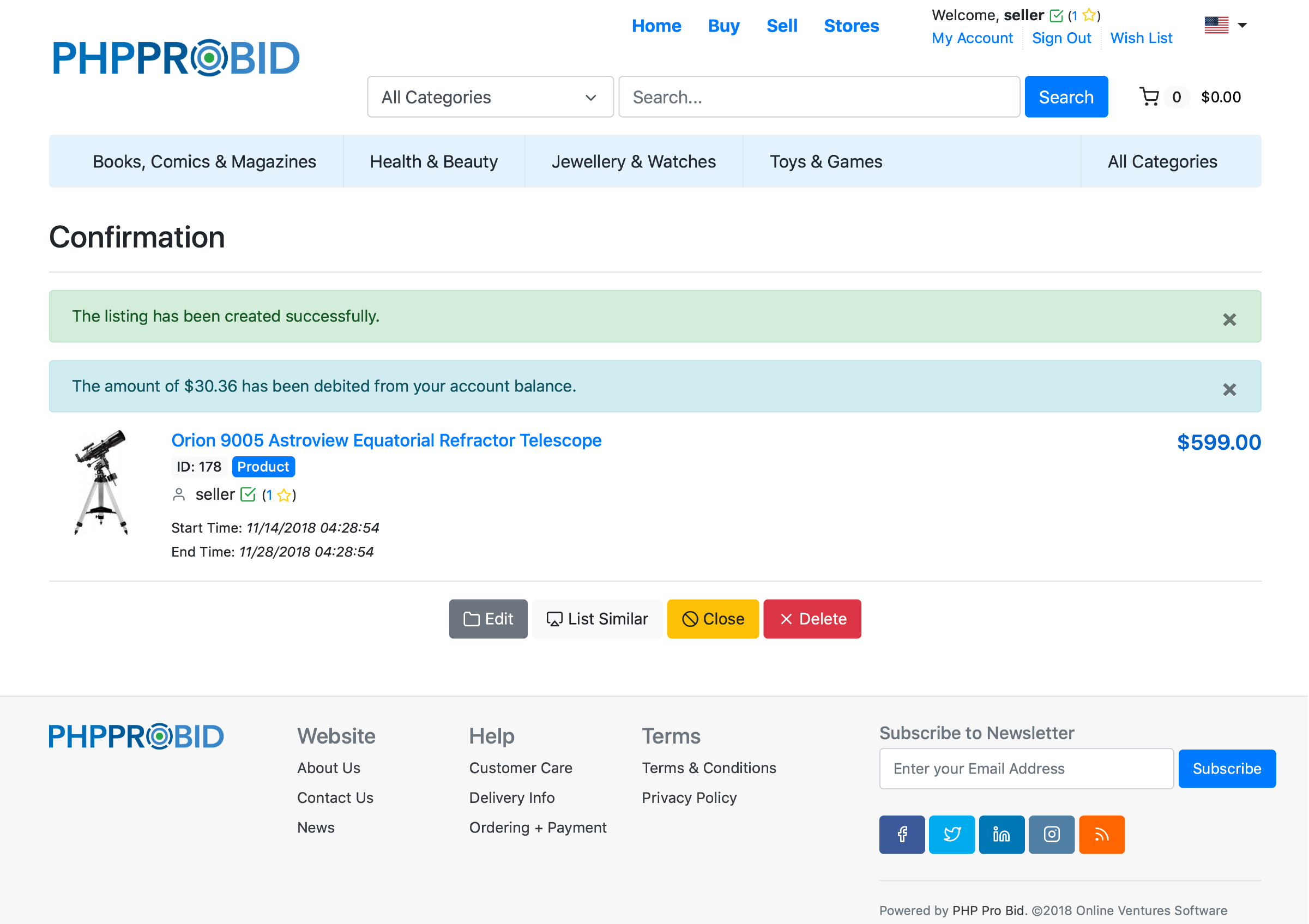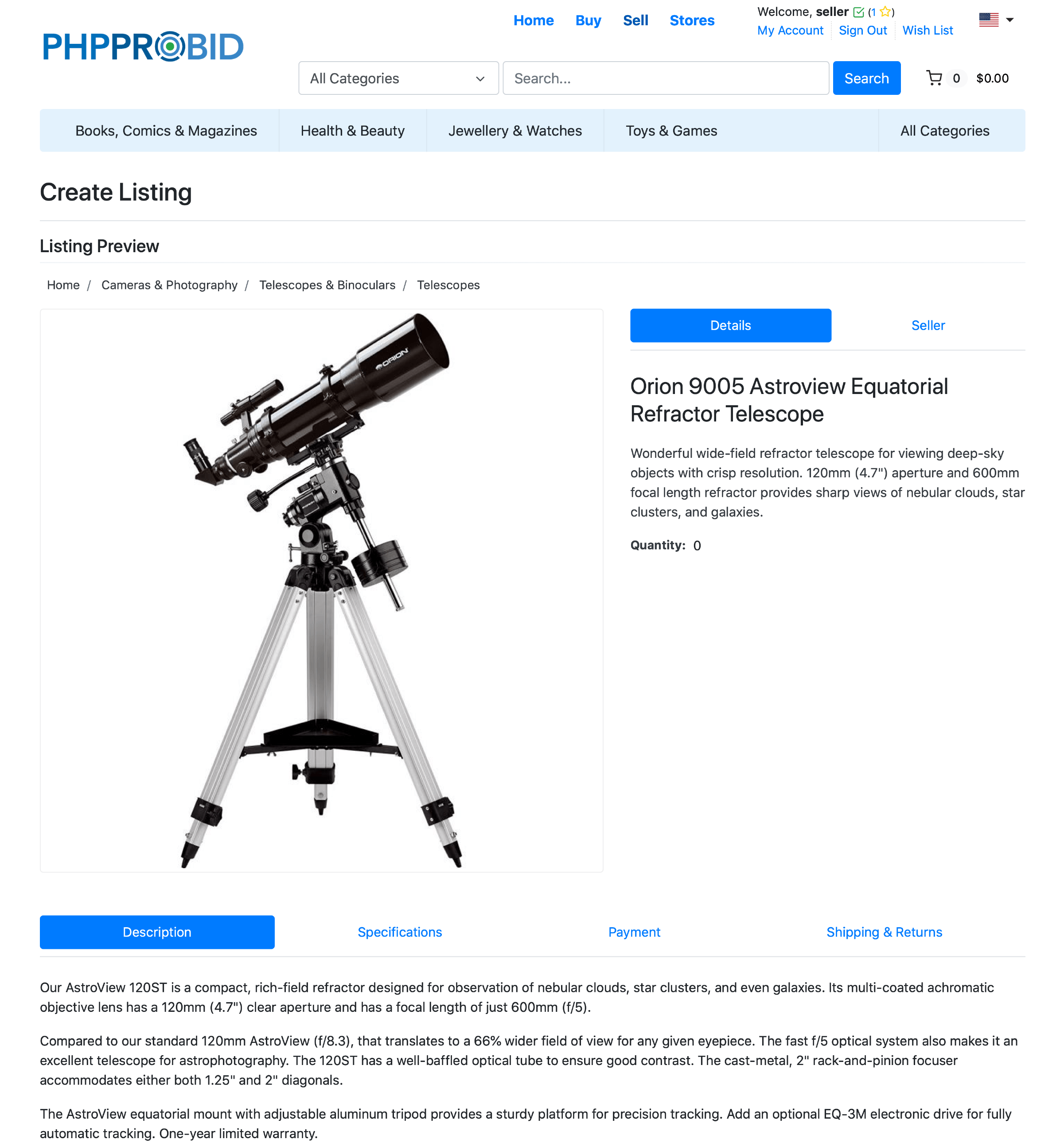 In the Front End, click Sell and you will be directed to the Create Listing page.