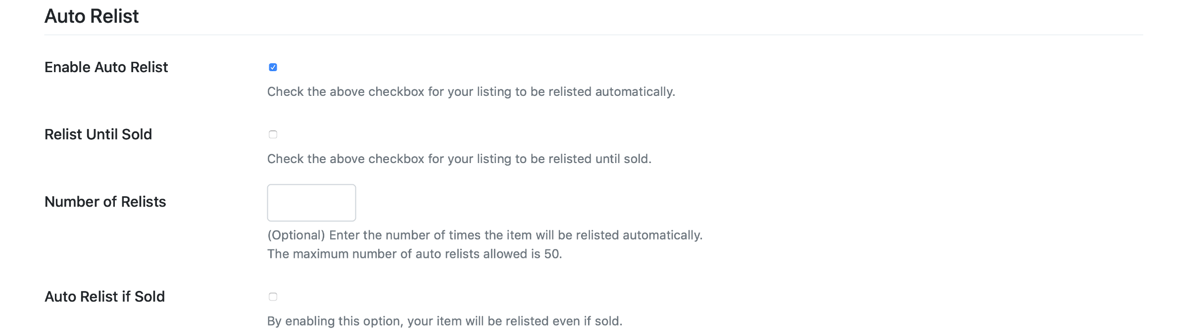 From the Auto Relist section: