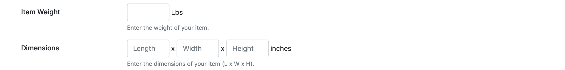 Enter the weight and dimensions of your item (L x W x H).