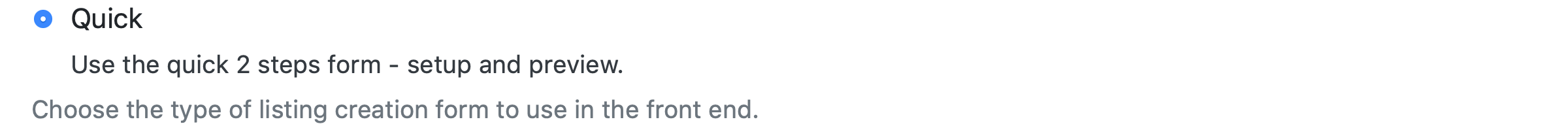 From the Listing Setup Process (Admin Control Panel -> Settings -> Listing Settings -> Global Settings -> Listing Setup Process) menu admins can choose between two types of listings setup processes: