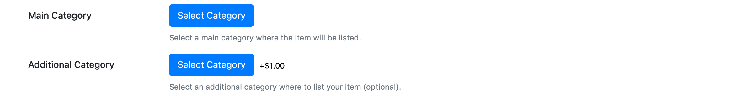 Select a Main Category and an Additional Category (optional, paid feature).