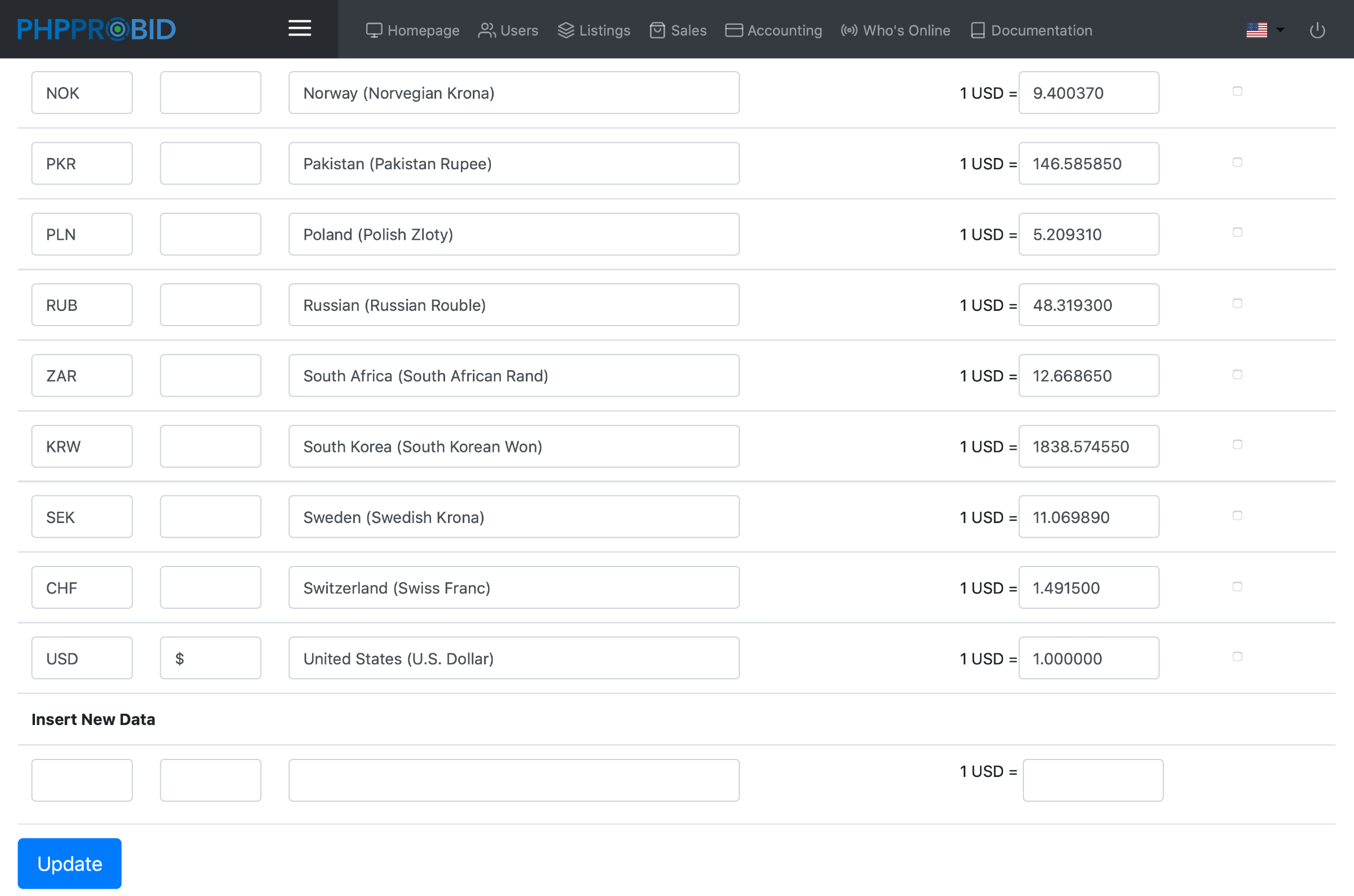 Select, from the Currency Settings menu (Admin Control Panel -> Settings -> Listings Settings -> Global Settings -> Currency Settings):