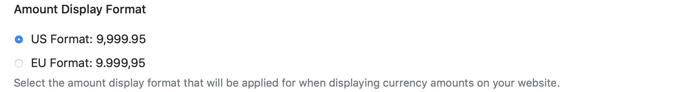 The amount display format that will be applied when displaying currency amounts.