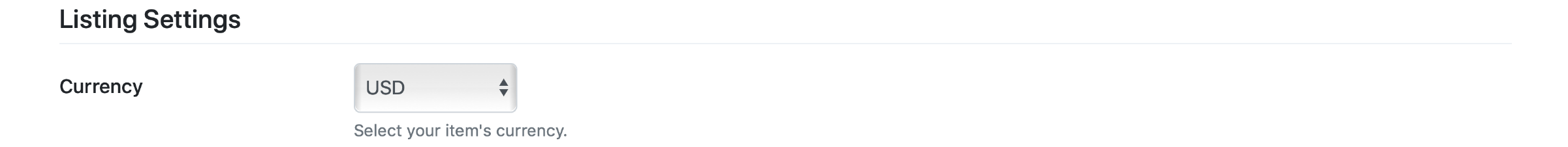 When creating a listing from the Listings Settings section select the desired currency: