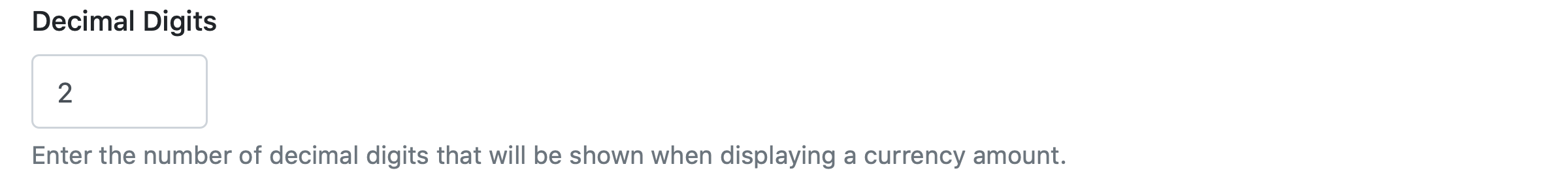 The number of decimal digits to be displayed with a specific amount.