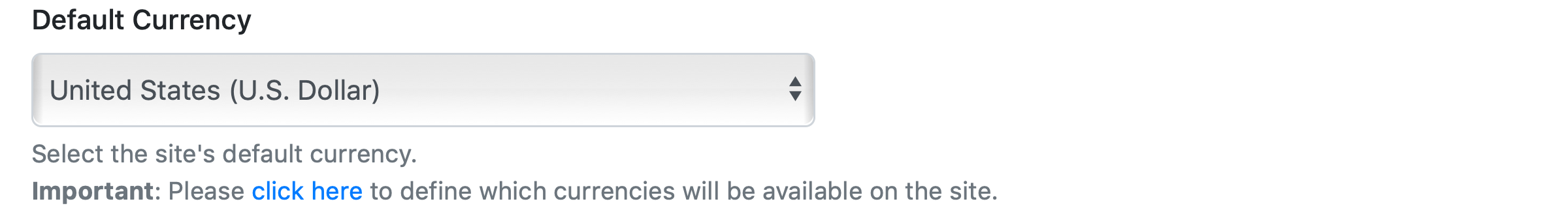 Select the site's default currency.