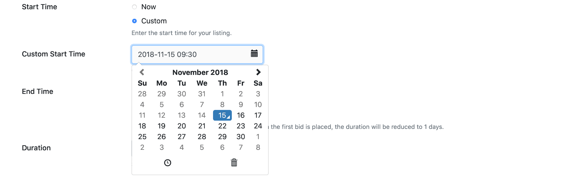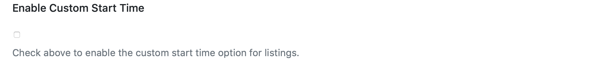 If checked, enables the custom start time option for listings.