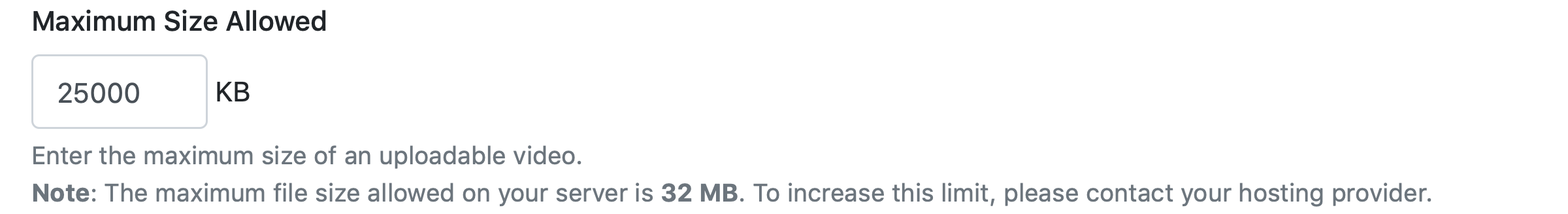 Note: The caption above is an example. The actual maximum size of an uploaded file will vary depending on the hosting provider.