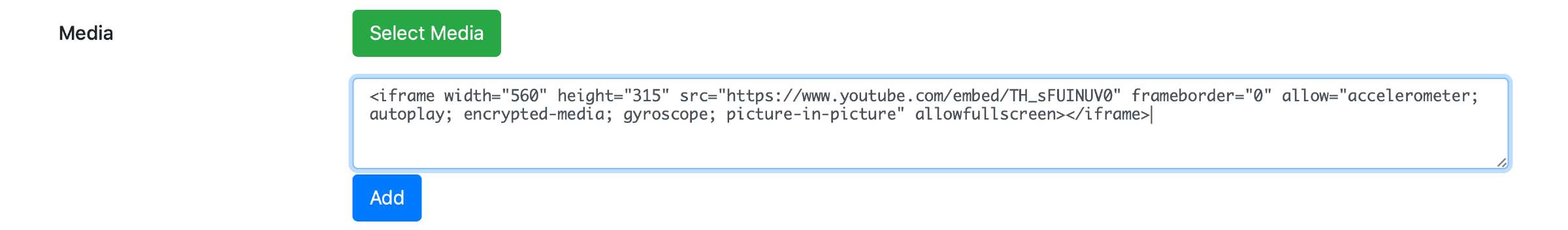 Example: For YouTube use the code provided when accessing "share" -> "embed" on any YouTube video.