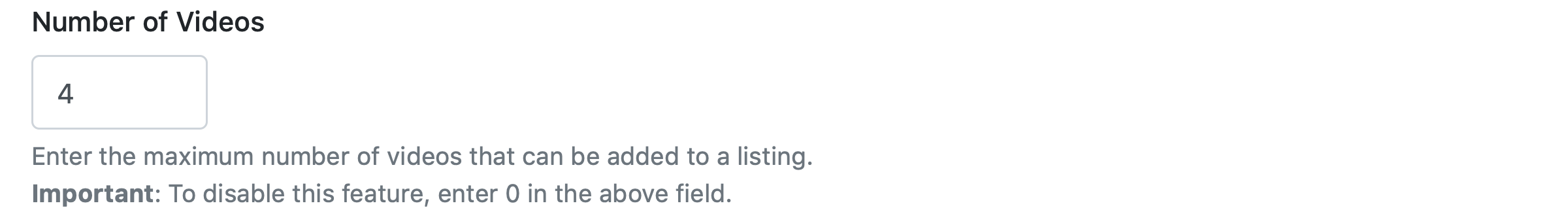 The maximum number of videos that can be added to a listing.