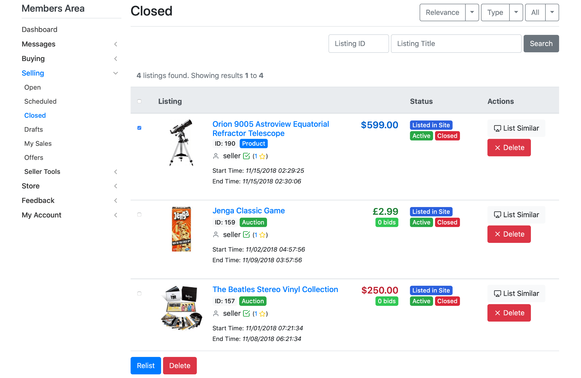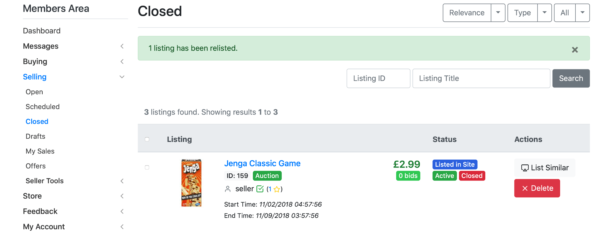 Note: The admin sets the maximum allowed number of auto relists, as described in the Configuration section.