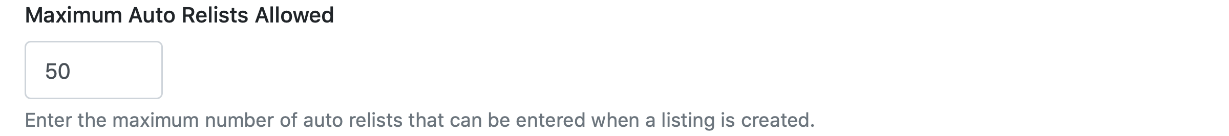 Enter the maximum number of relists allowed when creating a listing.
