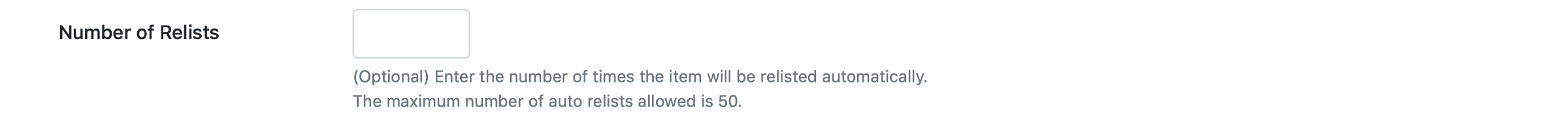 Enter the number of times the item will be relisted automatically.