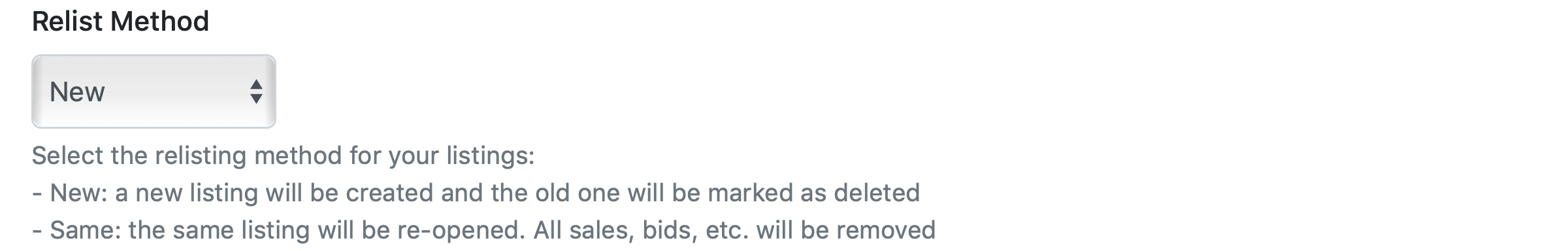 Select the relisting method to be applied to listings: