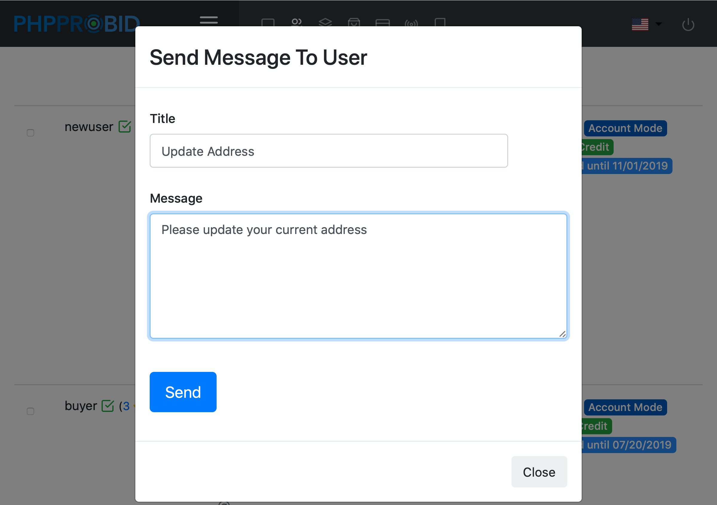 The admin can also contact registered users (Admin Control Panel -> Users). Select a user and click on the Message User option: