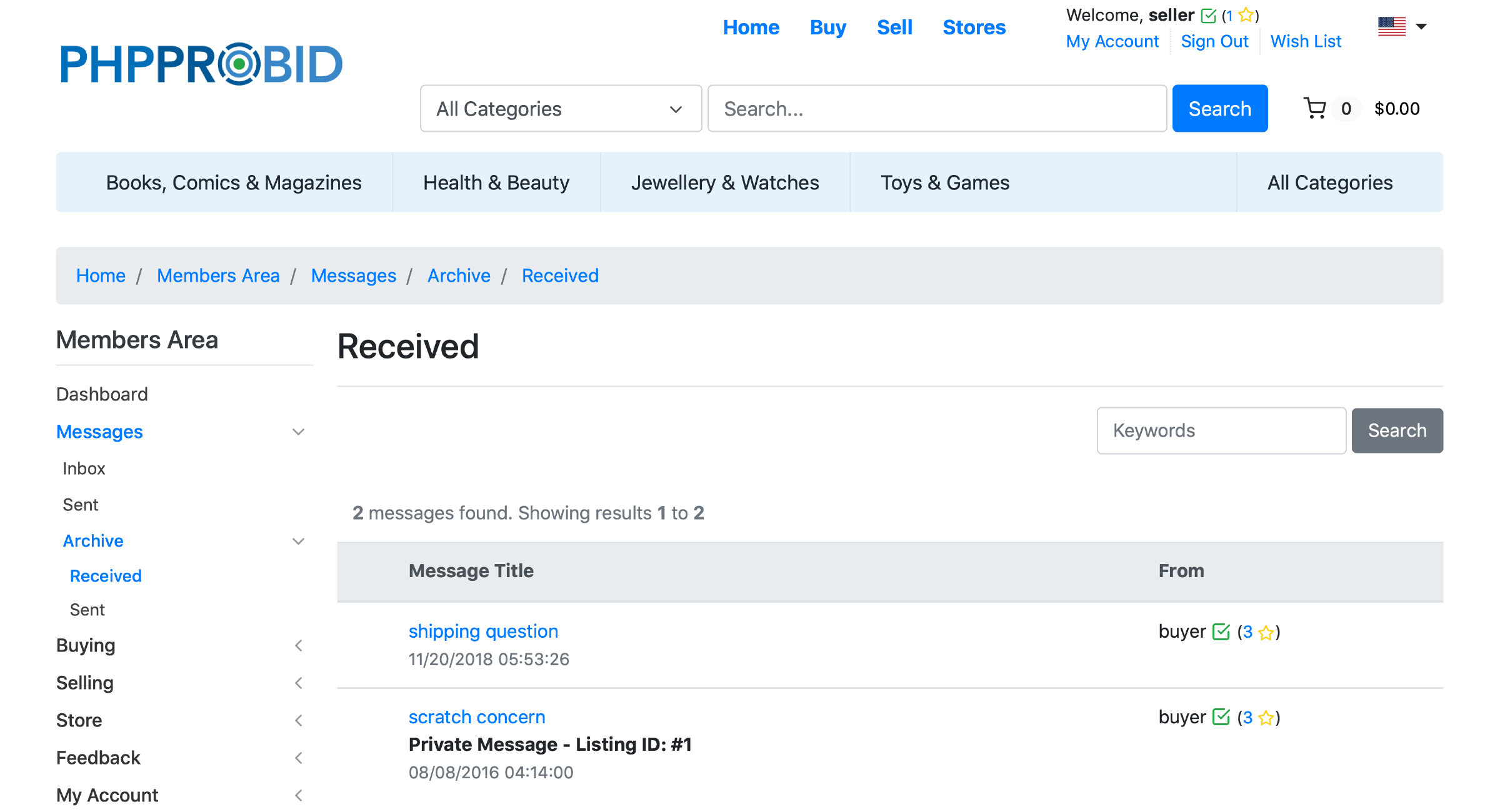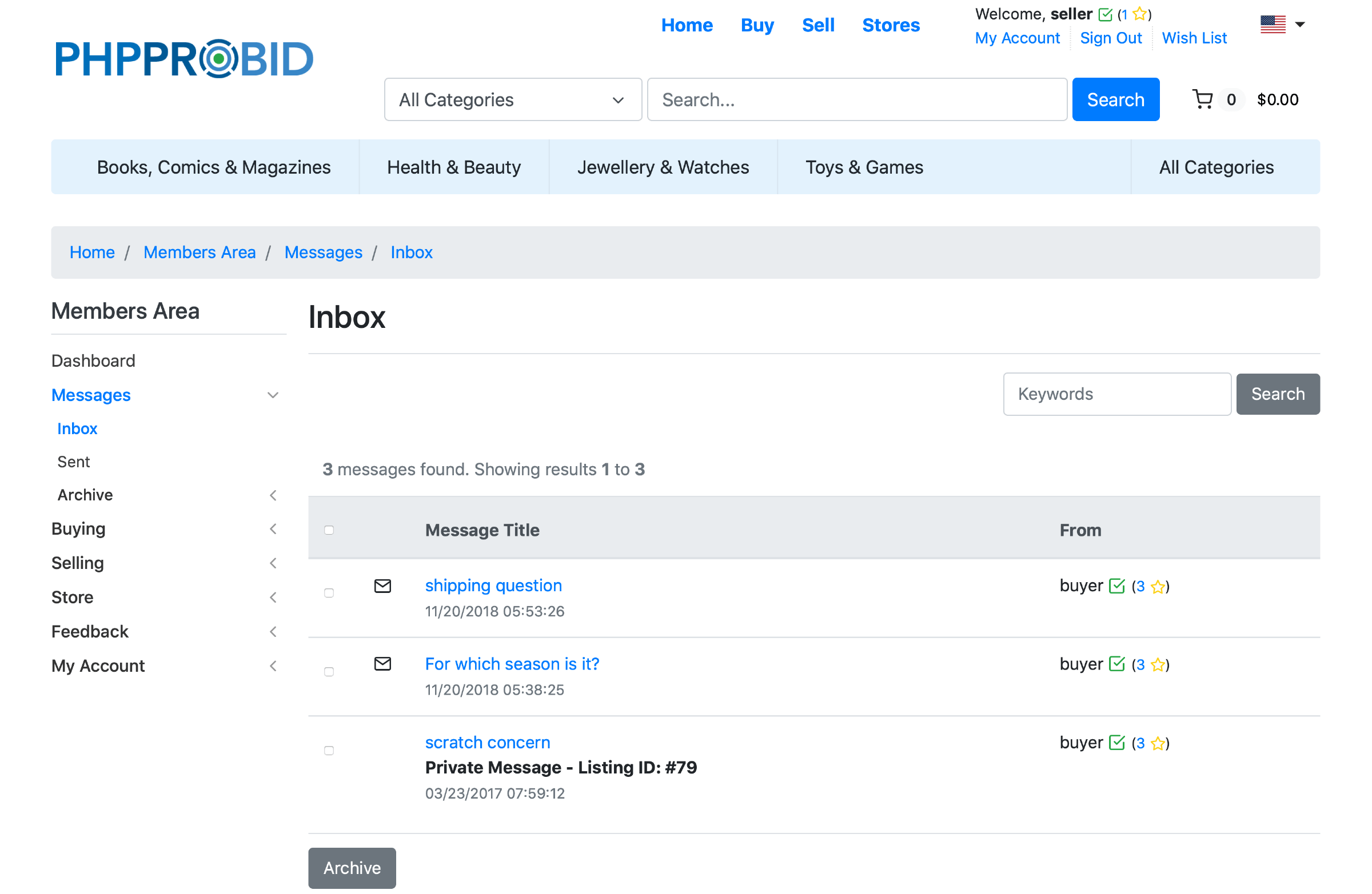 Archive messages for future reference. They will be automatically displayed in the Archive(Home -> Members Area -> Messages -> Archive ) section.