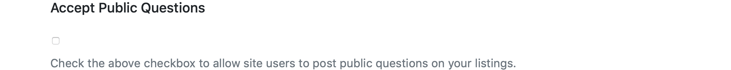 If enabled allows site visitors to post public questions on your listings.