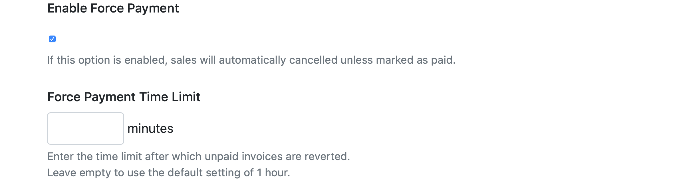 If enabled sales will be automatically cancelled unless marked as paid within a set period of time.