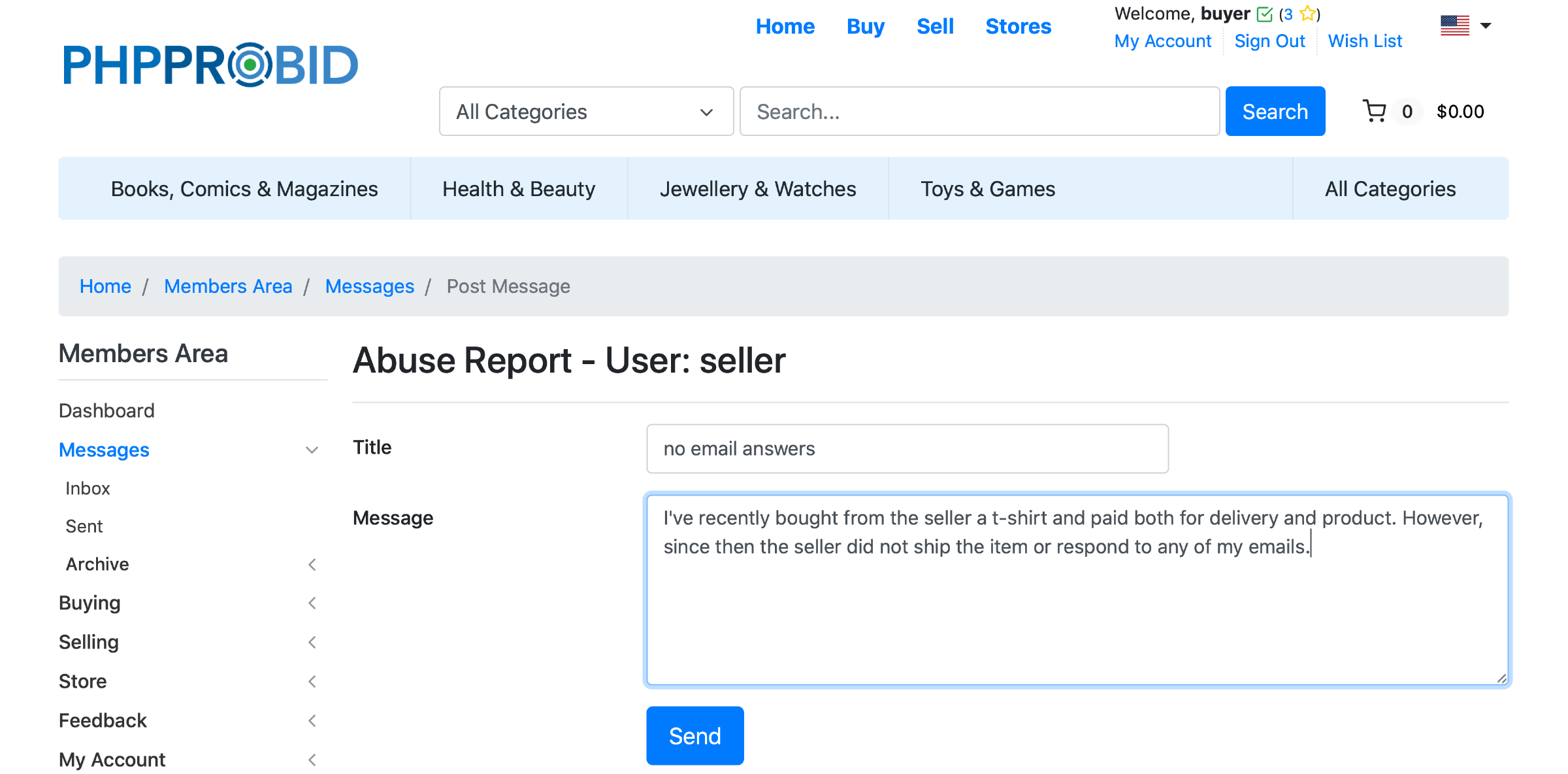 Important: When deciding to Report User, the seller/buyer will be asked to send a message stating the reasons for the report.