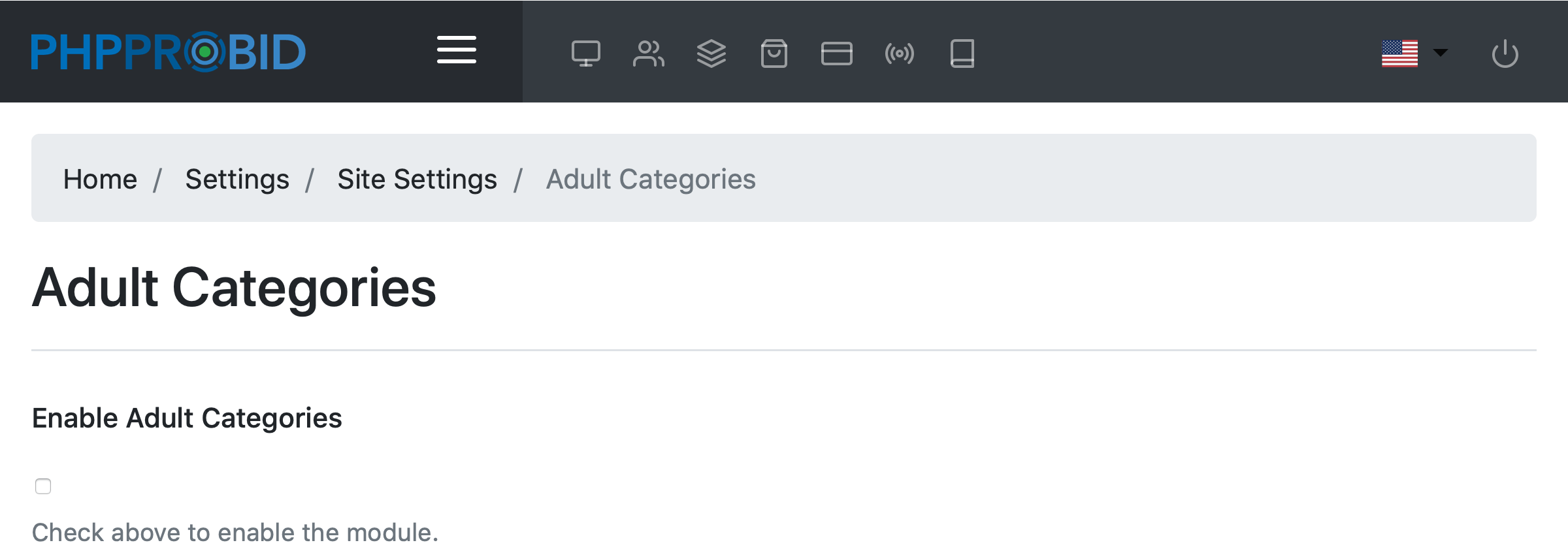 Check to enable the adult categories module.