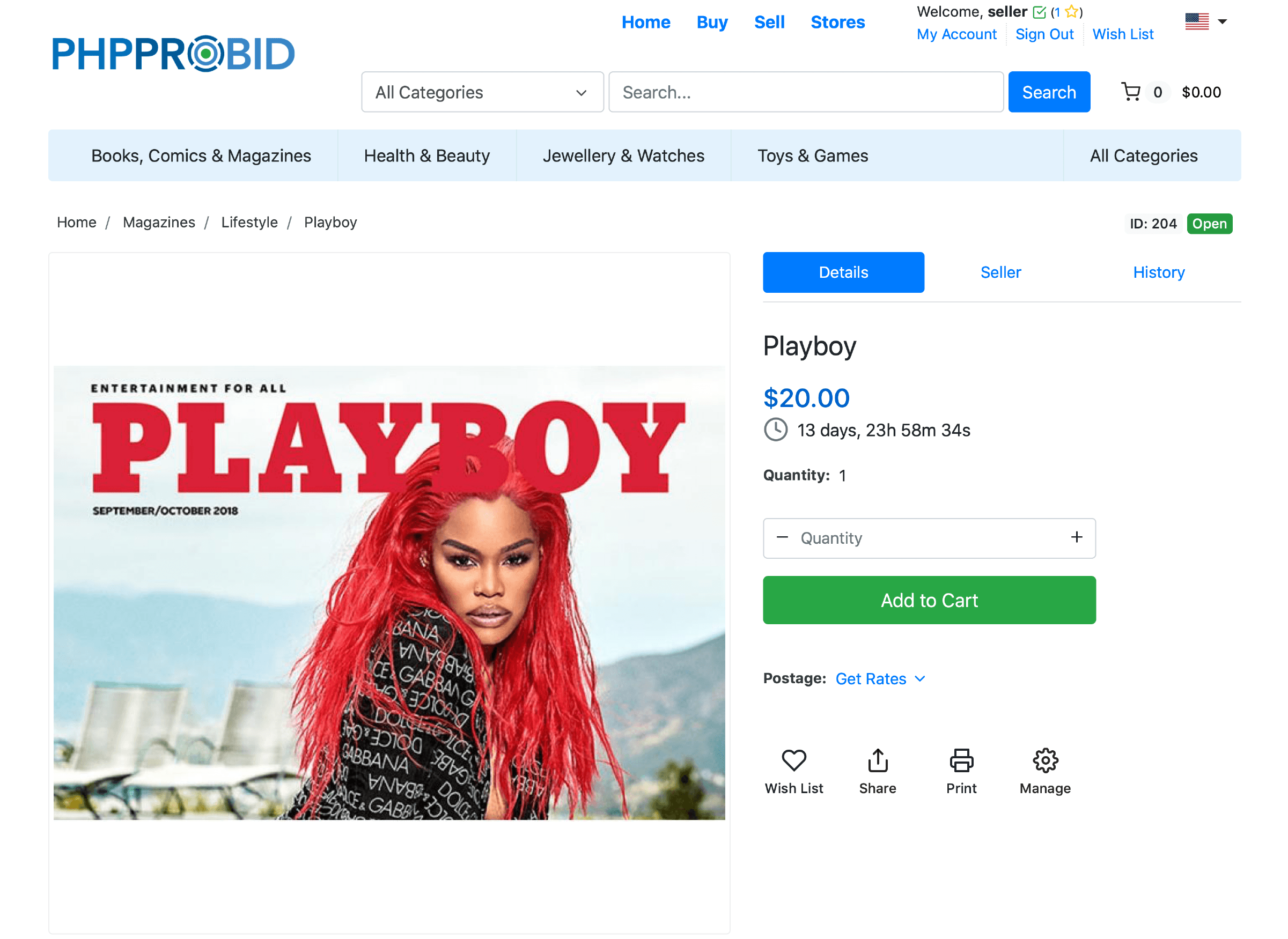 The Magazines section has three subcategories: General, Lifestyle and Politics. In our example, we'll upload an item in the Lifestyle category.