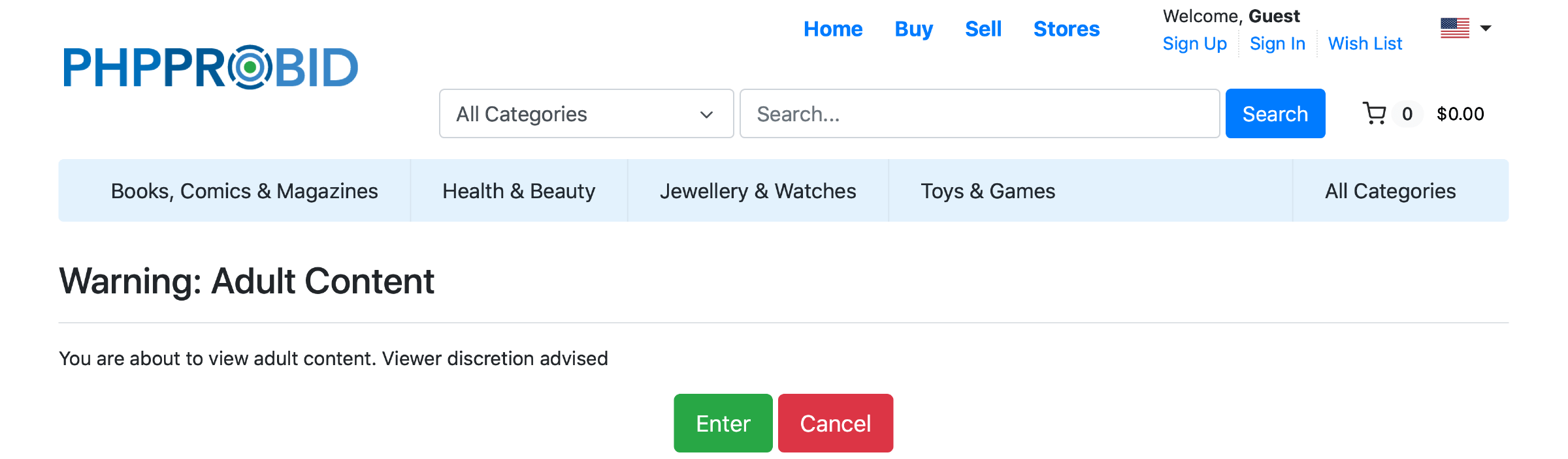 Please notice that Adult Categories will never be available for browsing in the main page or in the Search feature. To find adult items please go to the Browse section or Choose Category option.