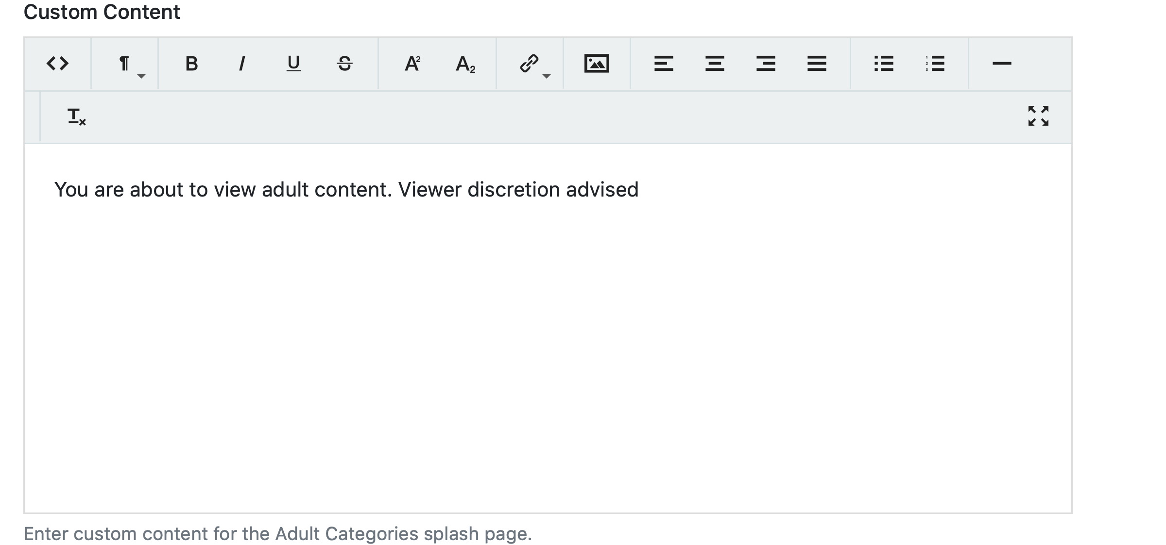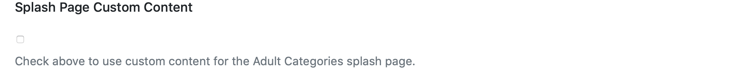 Check if you wish to use custom content for the adult categories splash page.