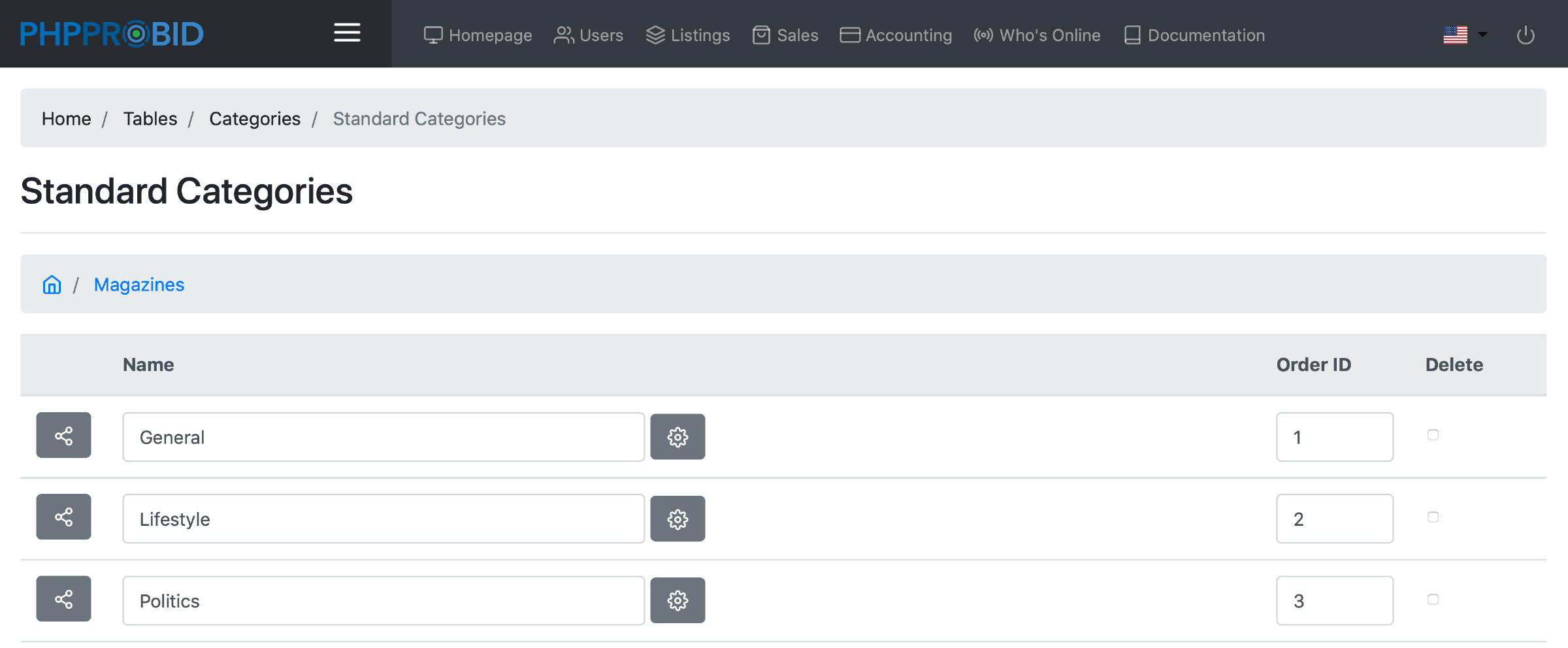 After checking both boxes and clicking Proceed, please go to the Tables -> Standard Categories menu and create a category. As an example, we created the Magazines section that is labeled as an Adult Category.