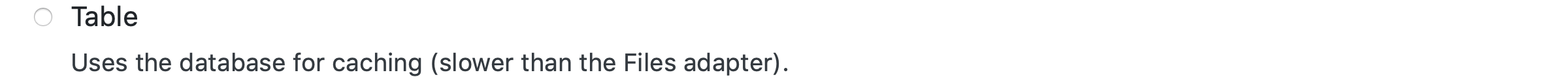 Disables the caching engine. Metadata caching will still be enabled, using the Files adapter.
