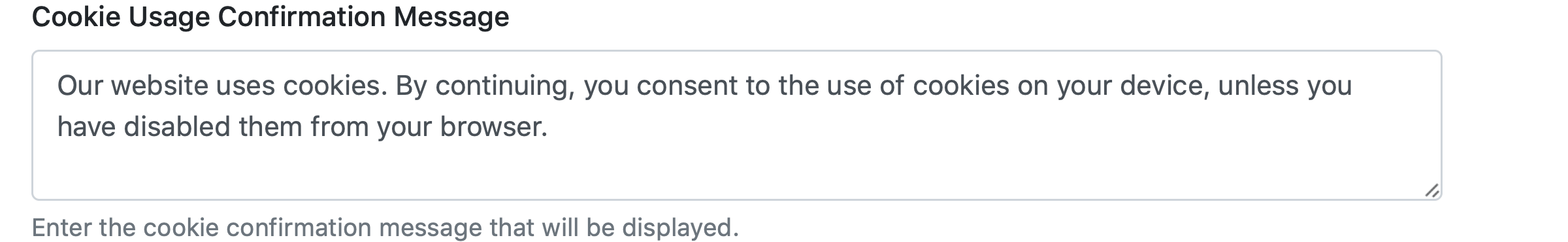 Enter the cookie confirmation message that will be displayed.