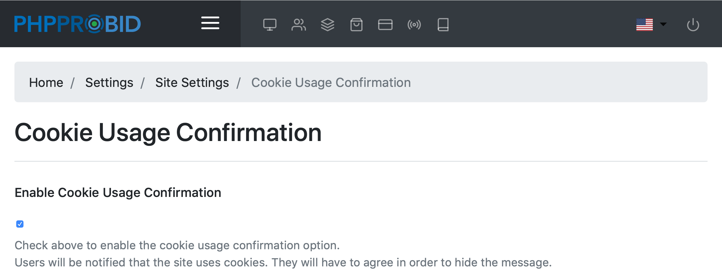 If checked, enables the cookie usage confirmation option.