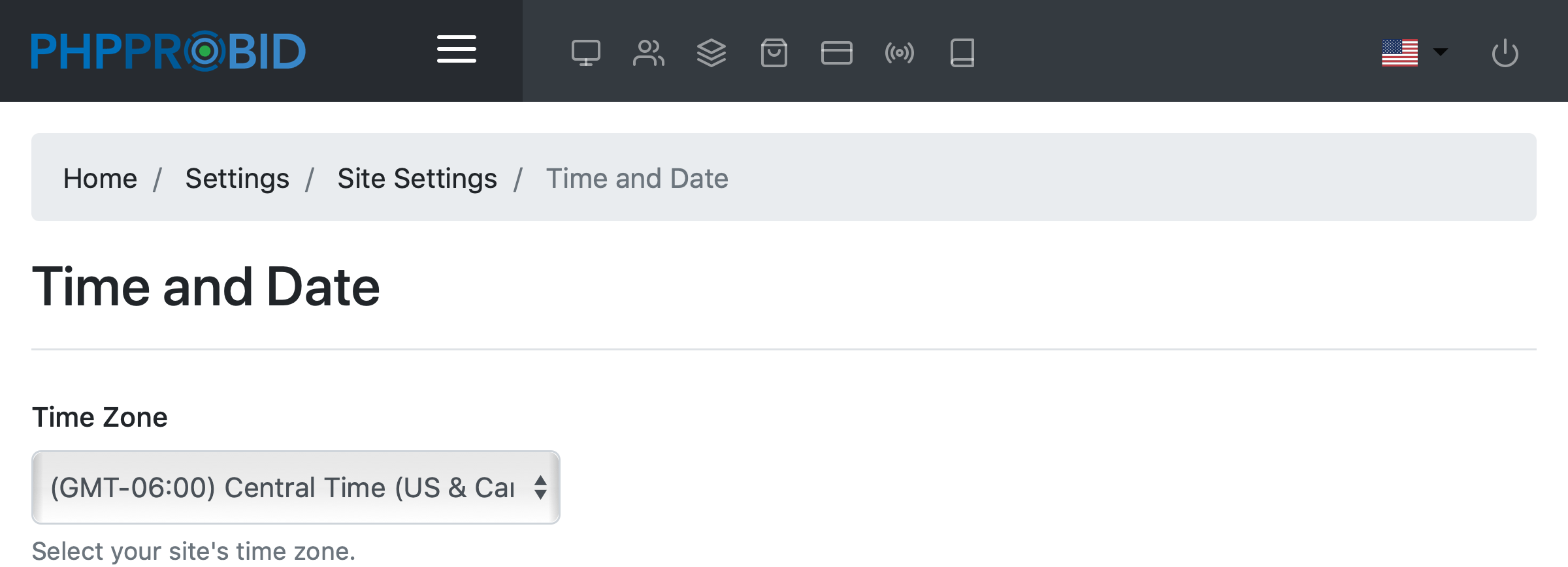 Select the site's time zone.