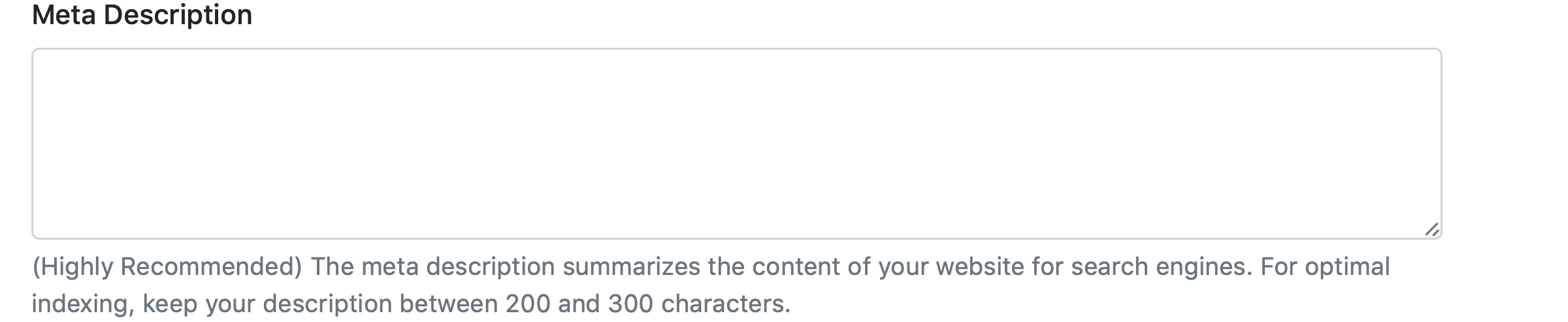 Tells search engines more about the content of the site. The description should be between 70 and 155 characters (including spaces).