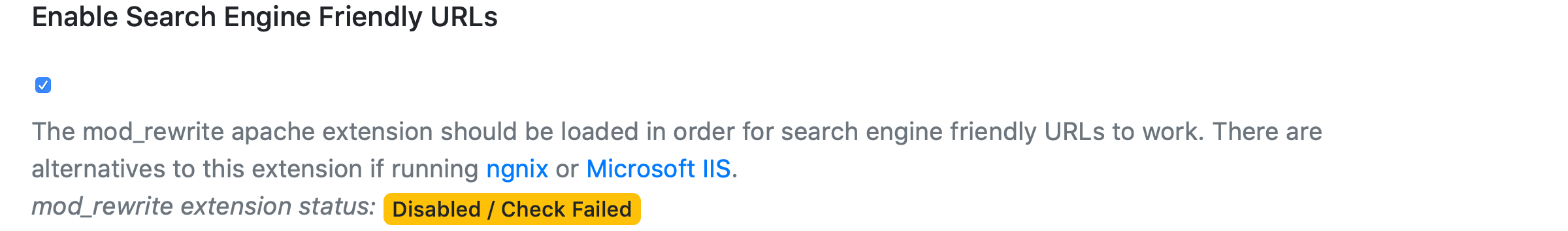 The mod_rewrite Apache extension should be loaded in order for search engine friendly URLs to work.