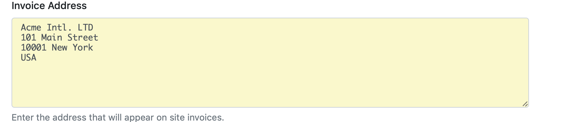 From the Site Invoice Settings (Admin Control Panel -> Settings -> Site Settings -> Site Invoice Settings) menu set/add: