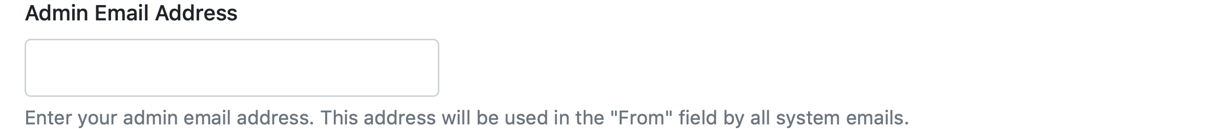 Enter the admin email address. This address will be used in the 'From' field by all system emails.