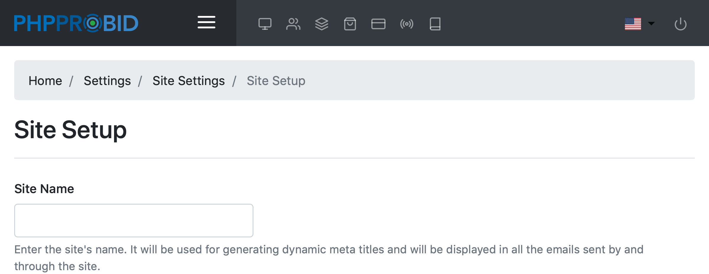Note: The name will be used for generating dynamic meta titles, and it will appear in all the emails sent by and through the site.