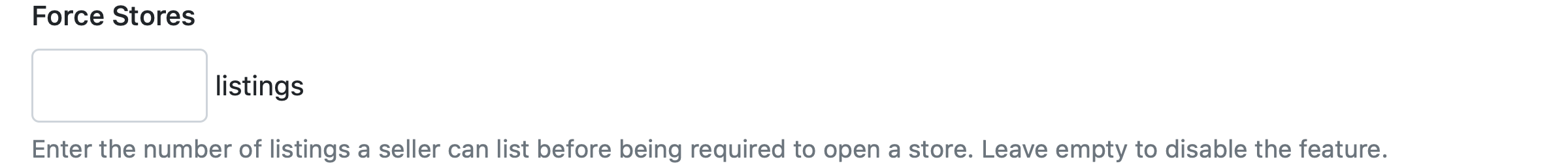 Enter a number of listings that a seller is allowed to list before being required to open a store. Leave empty to disable.