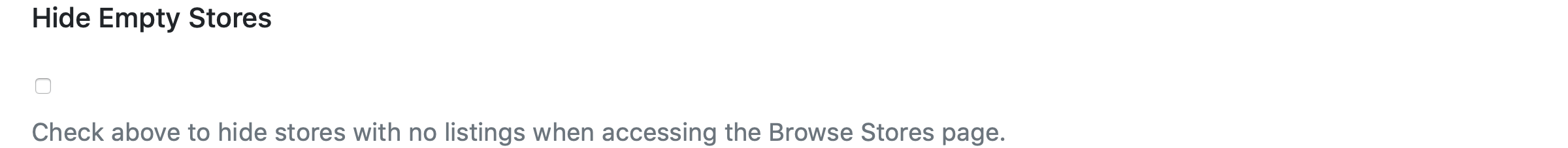 If enabled stores with no items will be hidden when accessing the Stores browse page.