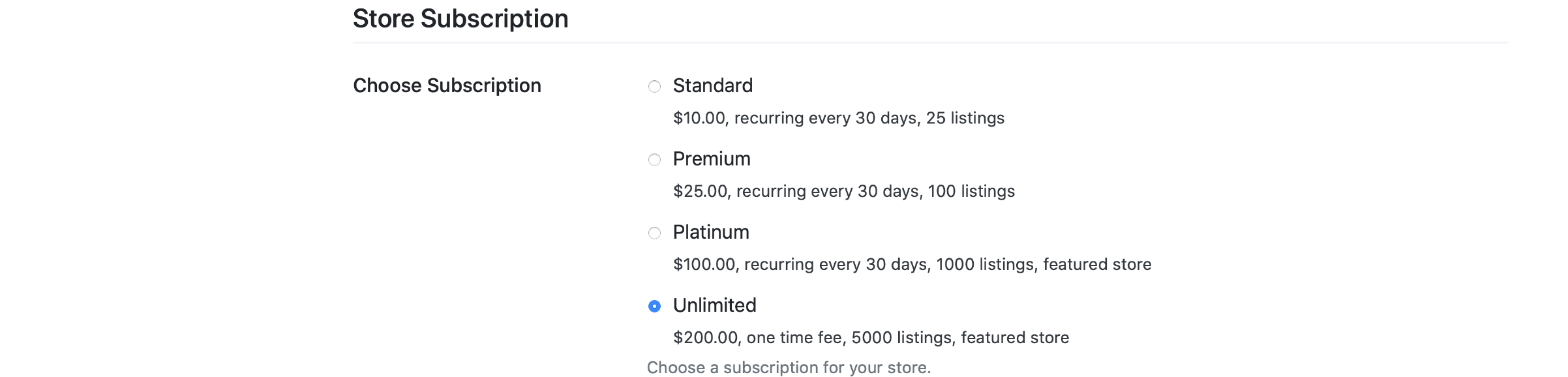 Being featured in the Stores page guarantees users permanent visibility. It's also a steady income source for site admins. Discover below how to create different types of subscriptions that will enhace the selling opportunities for any store.